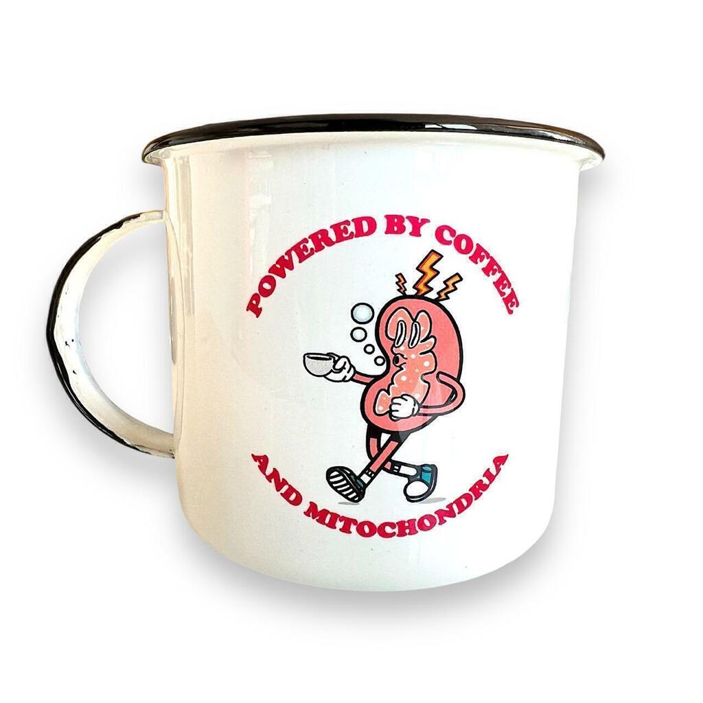 Caneca em àgata de 370ml com a mitocondria tomando café